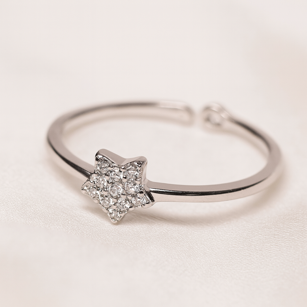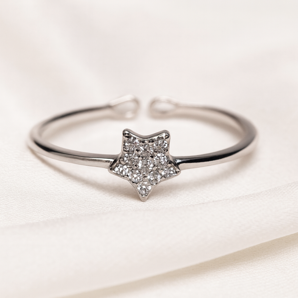 This enchanting ring is crafted from 925 sterling silver and features a star-shaped motif adorned