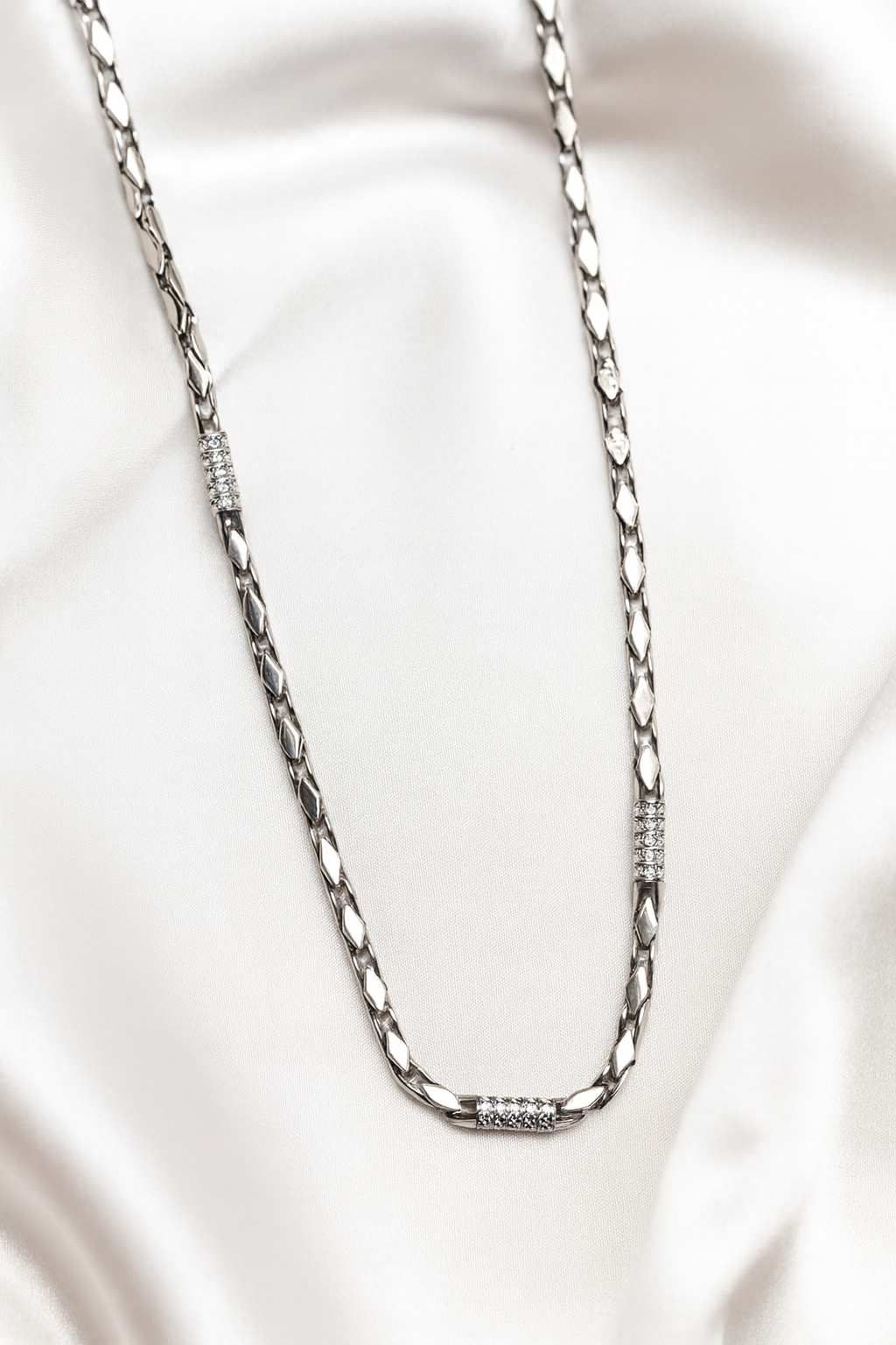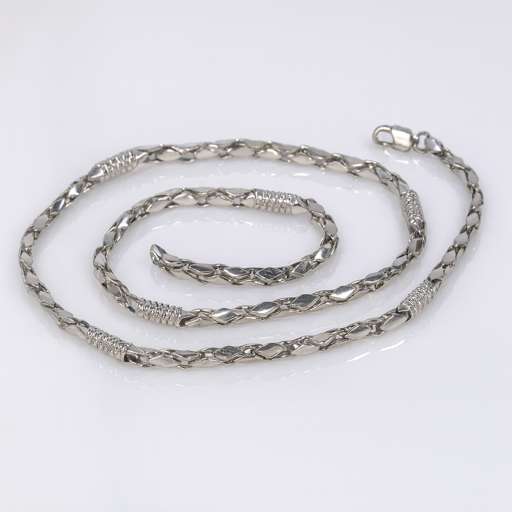The Arvana silver chain is inspired by the philosophy of refined strength—where elegance meets resilience. Its design reflects the perfect balance between minimalism and luxury, created for individuals who appreciate understated sophistication with a touch of brilliance.